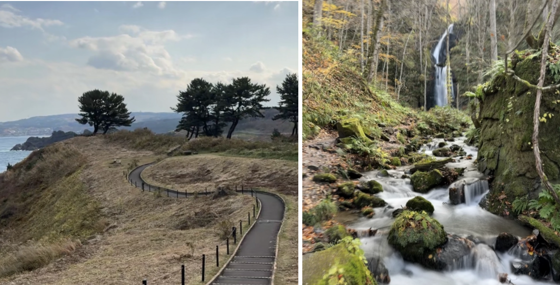 We started at the Nikka Whisky Miyagikyo Distillery — even if you don’t drink whisky, the grounds are insanely beautiful.Then a BBQ lunch and straight to Akiu Great Falls, which looks like a dramatic anime background painting in real life.